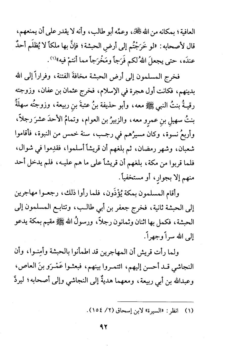 العافية؛ بمكانه من الله - عَزَّ وَجَلَّ -، وعمِّه أبو طالب، وأنه لا يقدر على أن يمنعهم، قال لأصحابه: "لو خَرَجْتُم إلى أرضِ الحبشة؛ فإنَّ بها ملكًا لا يُظلَم أحدٌ عندَه، حتى يجعلَ اللهُ لكم فَرَجًا ومَخْرَجًا مما أنتمْ فيه" (¬1).
