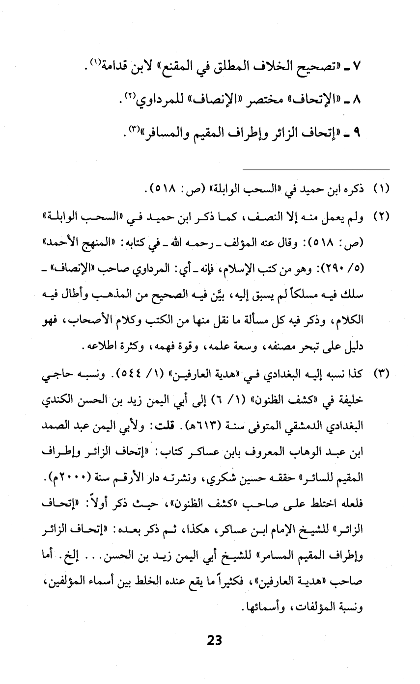 7 - "تصحيح الخلاف المطلق في المقنع" لابن قدامة (¬1) 8 - "الإتحاف" مختصر "الإنصاف" للمرداوي (¬2).