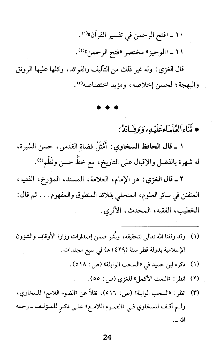 (¬4) انظر: "السحب الوابلة" (ص: 516)، نقلاً عن "الضوء اللامع" للسخاوي، ولم أقف للسخاوي في "الضوء اللامع" على ذكرٍ للمؤلف - رحمه الله -.