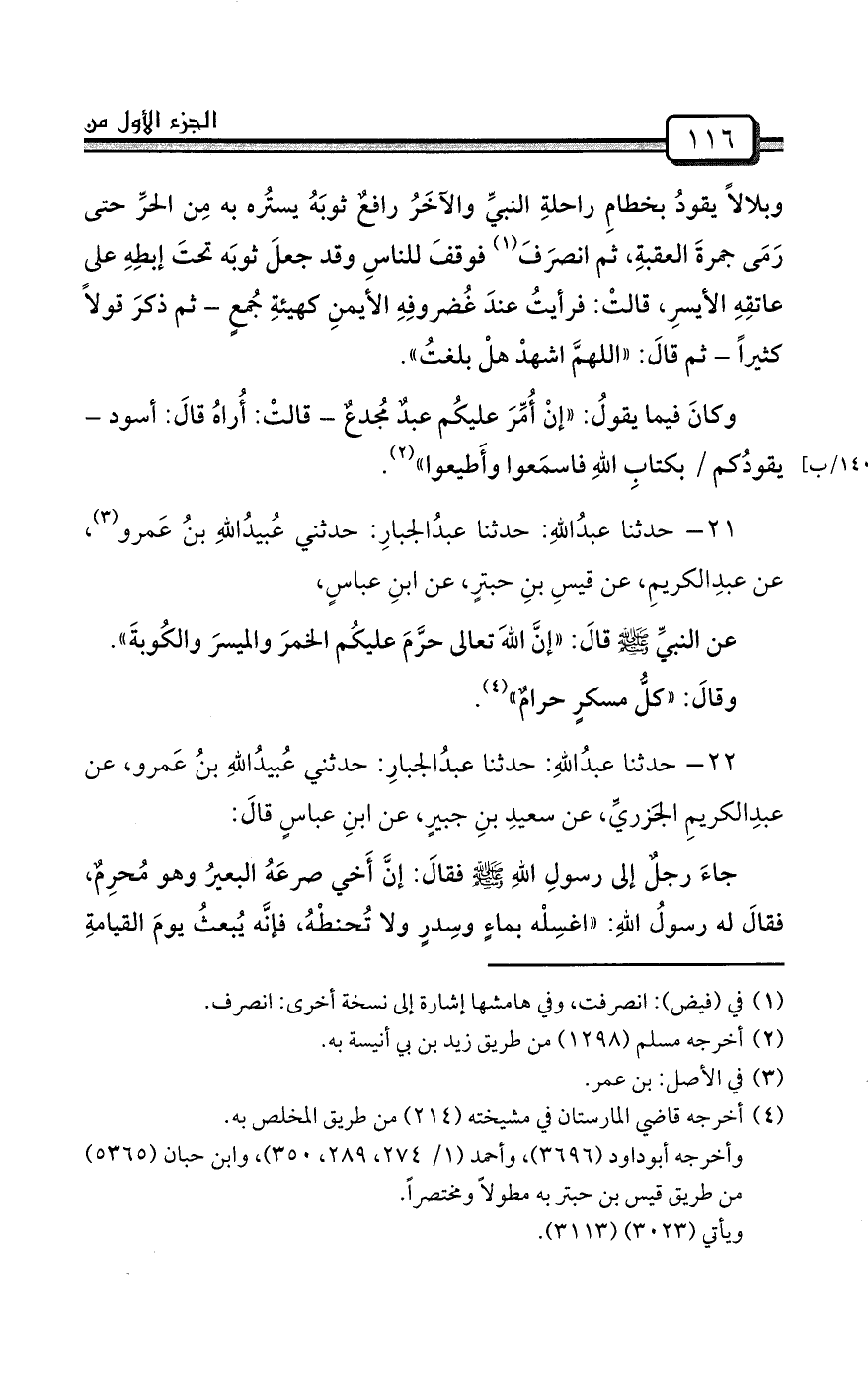 20- حدثنا عبدُاللهِ: حدثنا عبدُالجبارِ: حدثني عُبيدُاللهِ، عن زيدِ بنِ أبي أُنيسةَ، عن يحيى بنِ حصينٍ، عن أُمِّ حصينٍ قالتْ: