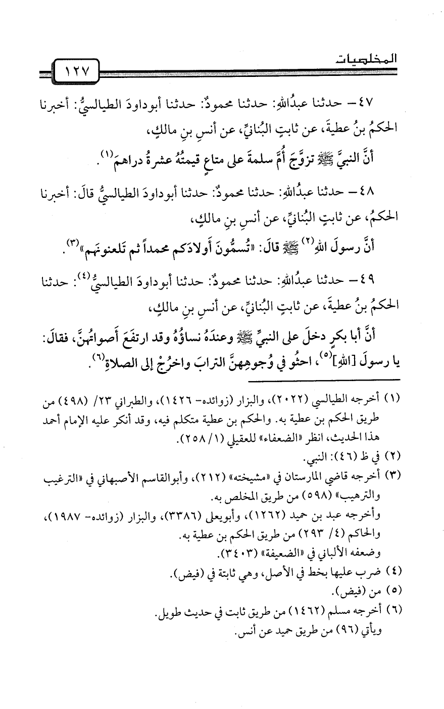 48- حدثنا عبدُاللهِ: حدثنا محمودٌ: حدثنا أبوداودَ الطيالسيُّ قالَ: أخبرنا الحكمُ، عن ثابتٍ البُنانيِّ، عن أنسِ بنِ مالكٍ،