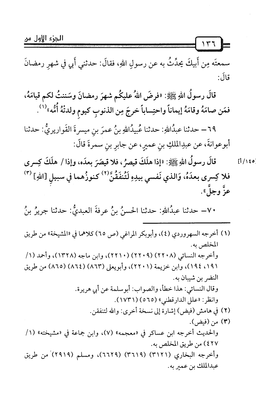 70- حدثنا عبدُاللهِ: حدثنا الحسنُ بنُ عرفةَ العبديُّ: حدثنا جريرُ بنُ