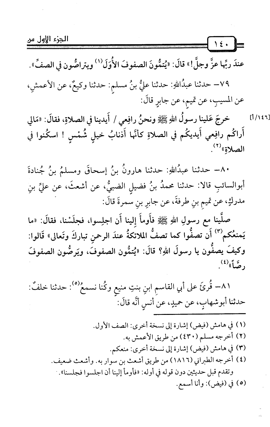 (¬1) في هامش (فيض) إشارة إلى نسخة أخرى: الصف الأول.
