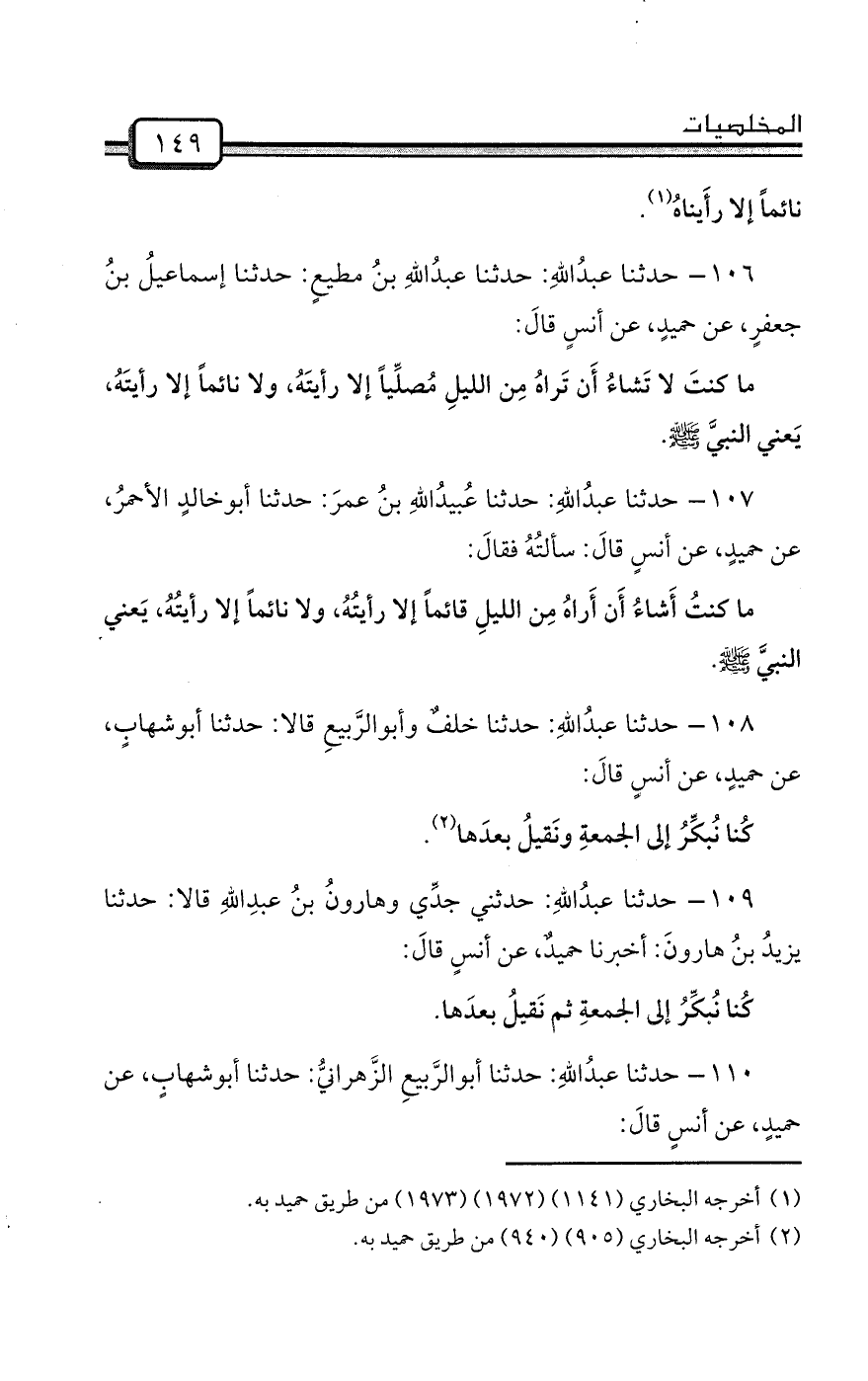 110- حدثنا عبدُاللهِ: حدثنا أبوالرَّبيعِ الزَّهرانيُّ: حدثنا أبوشهابٍ، عن حميدٍ، عن أنسٍ قالَ: