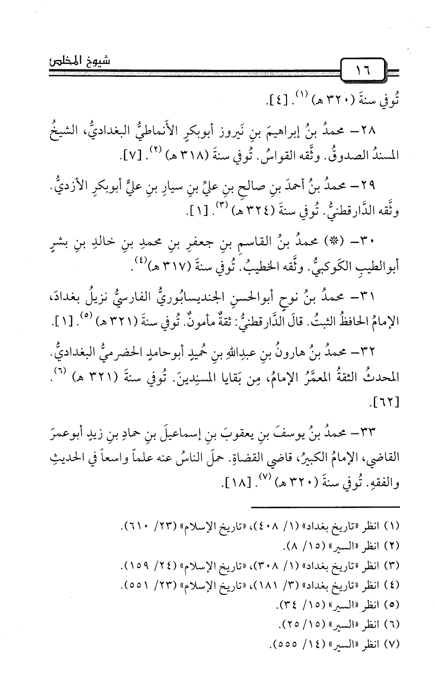 (¬3) انظر «تاريخ بغداد» (1/ 308) ، «تاريخ الإسلام» (24/ 159) .