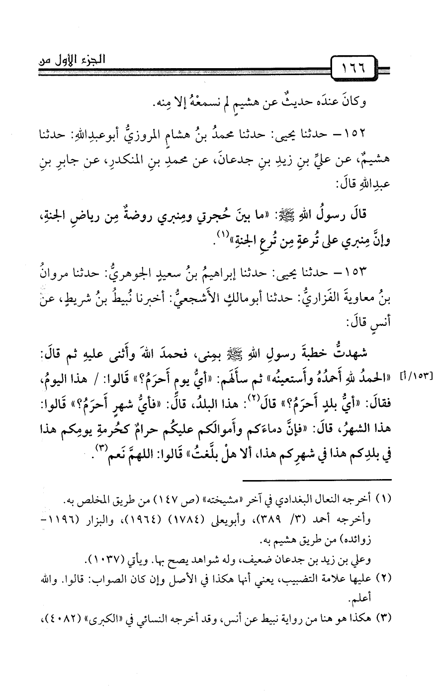 152- حدثنا يحيى: حدثنا محمدُ بنُ هشامٍ المروزيُّ أبوعبدِاللهِ: حدثنا هشيمٌ، عن عليِّ بنِ زيدِ بنِ جدعانَ، عن محمدِ بنِ المنكدرِ، عن جابرِ بنِ عبدِاللهِ قالَ: