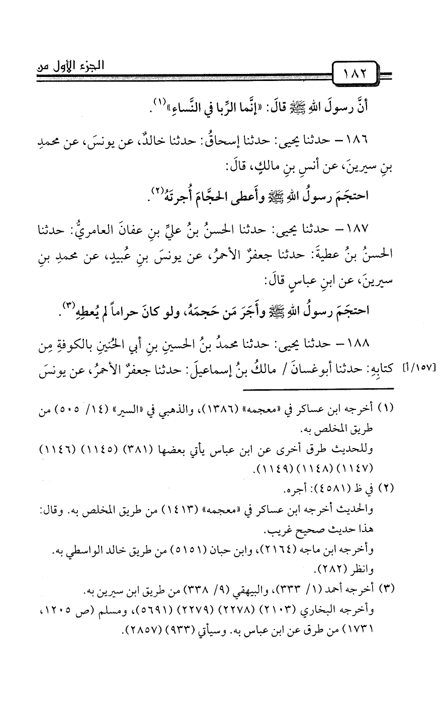 188- حدثنا يحيى: حدثنا محمدُ بنُ الحسينِ بنِ أبي الحُنينِ بالكوفةِ مِن كتابِهِ: حدثنا أبوغسانَ / مالكُ بنُ إسماعيلَ: حدثنا جعفرٌ الأحمرُ، عن يونسَ