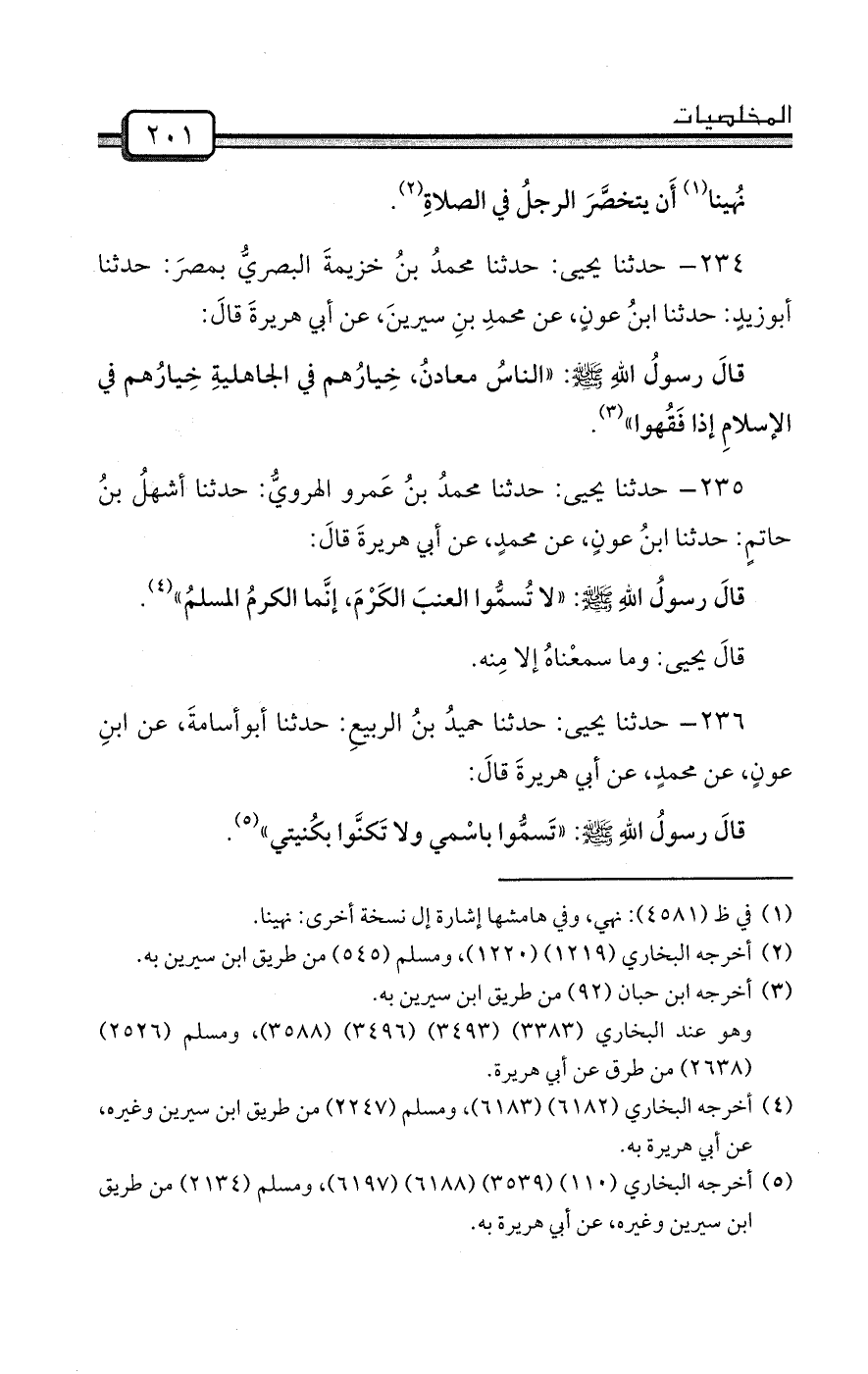 (¬5) أخرجه البخاري (110) (3539) (6188) (6197) ، ومسلم (2134) من طريق ابن سيرين وغيره، عن أبي هريرة به.