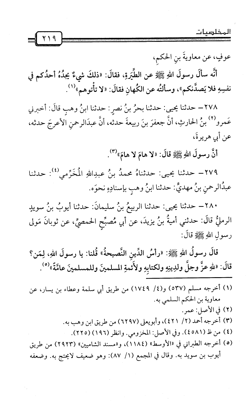 279- حدثنا يحيى: حدثناهُ محمدُ بنُ عبدِاللهِ المُخَرِّمي (¬4) : حدثنا عبدُالرحمنِ بنُ مهديٍّ: حدثنا ابنُ وهبٍ بإسنادِهِ نحوَه.