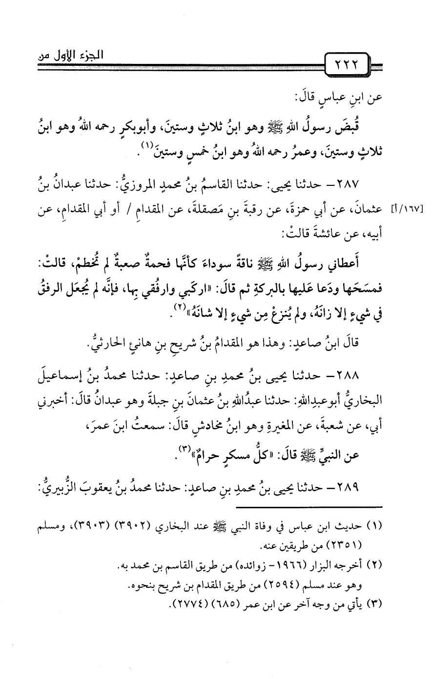 (¬1) حديث ابن عباس في وفاة النبي صلى الله عليه وسلم عند البخاري (3902) (3903) ، ومسلم (2351) من طريقين عنه.