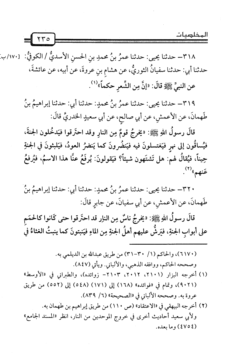 320- حدثنا يحيى: حدثنا عمرُ بنُ محمدٍ: حدثنا أبي: حدثنا إبراهيمُ بنُ طَهمانَ، عن الأعمشِ، عن أبي سفيانَ، عن جابرٍ قالَ: