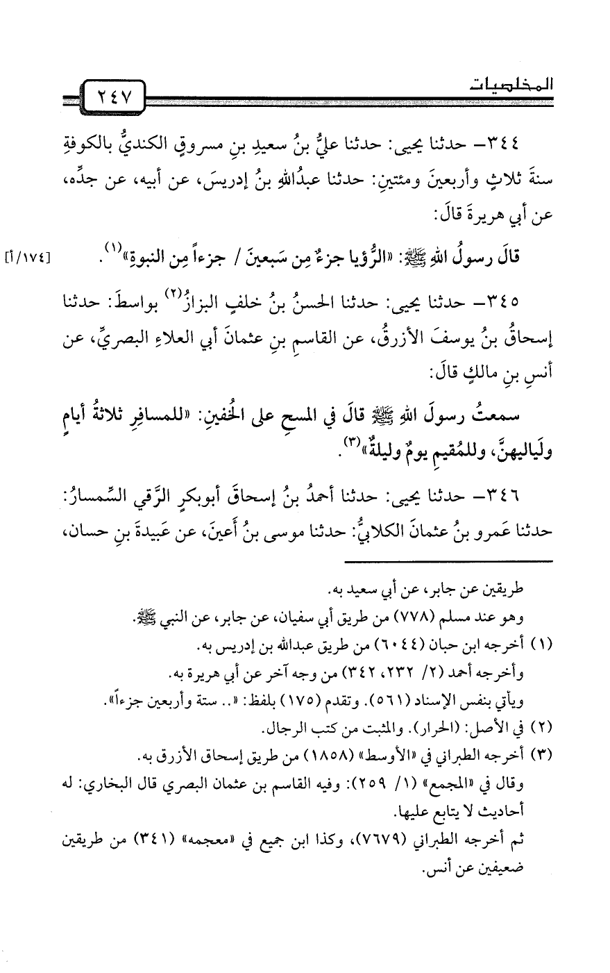 344- حدثنا يحيى: حدثنا عليُّ بنُ سعيدِ بنِ مسروقٍ الكنديُّ بالكوفةِ سنةَ ثلاثٍ وأربعينَ ومئتينِ: حدثنا عبدُاللهِ بنُ إدريسَ، عن أبيه، عن جدِّه، عن أبي هريرةَ قالَ: