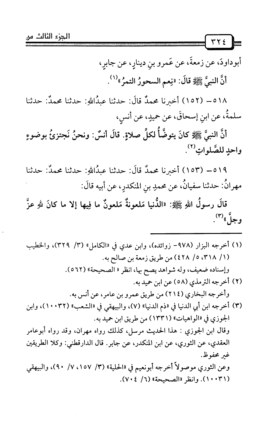 519- (153) أخبرنا محمدٌ قالَ: حدثنا عبدُاللهِ: حدثنا محمدٌ: حدثنا مهرانُ: حدثنا سفيانُ، عن محمدِ بنِ المنكدرِ، عن أبيه قالَ: