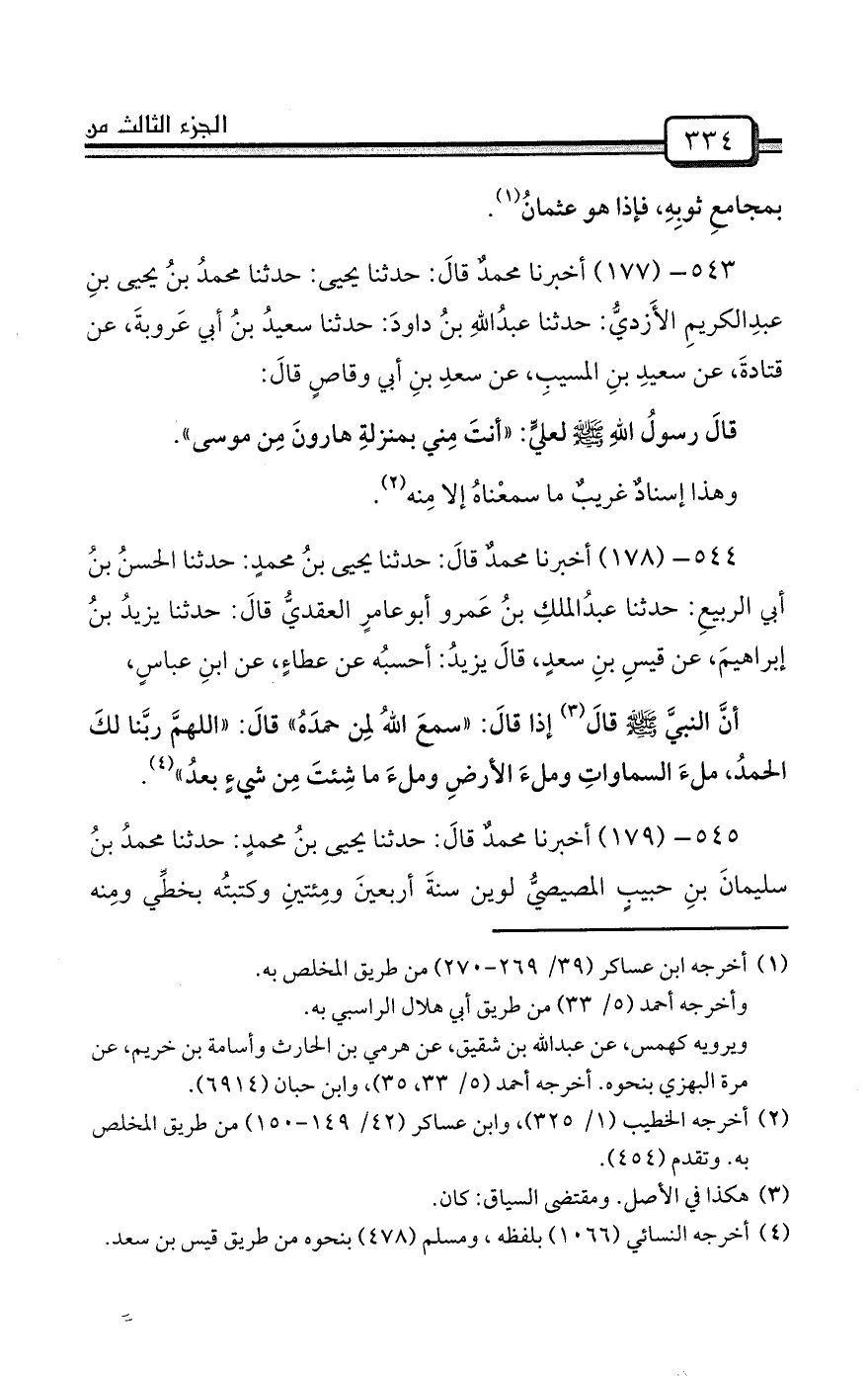 543- (177) أخبرنا محمدٌ قالَ: حدثنا يحيى: حدثنا محمدُ بنُ يحيى بنِ عبدِالكريمِ الأَزديُّ: حدثنا عبدُاللهِ بنُ داودَ: حدثنا سعيدُ بنُ أبي عَروبةَ، عن قتادةَ، عن سعيدِ بنِ المسيبِ، عن سعدِ بنِ أبي وقاصٍ قالَ: