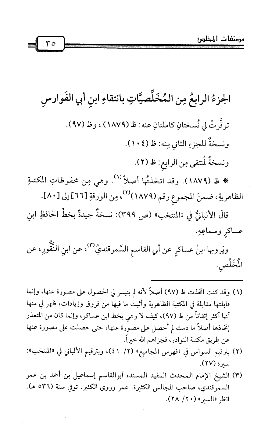 (¬2) بترقيم السواس في «فهرس المجاميع» (2/ 41) ، وبترقيم الألباني في «المنتخب» : سيرة (27) .