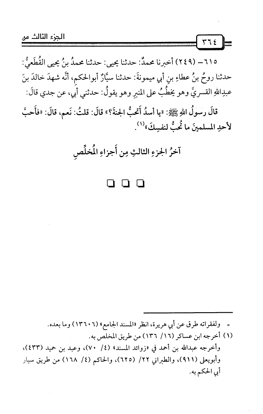آخرُ الجزءِ الثالثِ مِن أَجزاءِ المُخلِّصِ