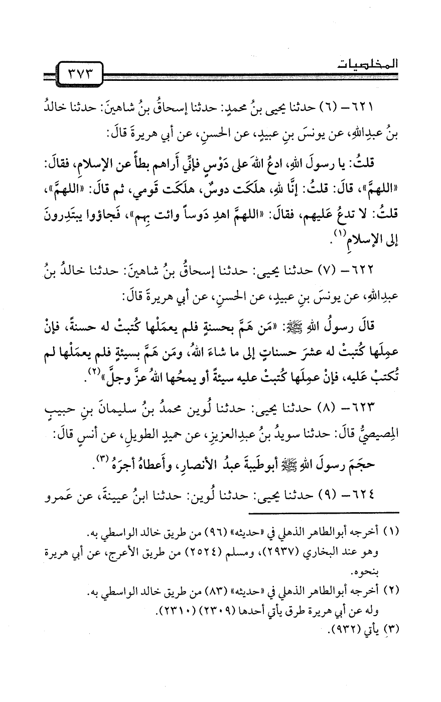 621- (6) حدثنا يحيى بنُ محمدٍ: حدثنا إسحاقُ بنُ شاهينَ: حدثنا خالدُ بنُ عبدِاللهِ، عن يونسَ بنِ عبيدٍ، عن الحسنِ، عن أبي هريرةَ قالَ: