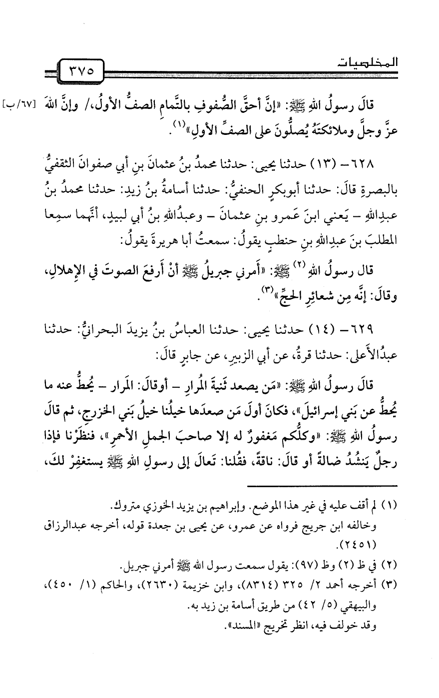 628- (13) حدثنا يحيى: حدثنا محمدُ بنُ عثمانَ بنِ أبي صفوانَ الثقفيُّ بالبصرةِ قالَ: حدثنا أبوبكرٍ الحنفيُّ: حدثنا أسامةُ بنُ زيدِ: حدثنا محمدُ بنُ عبدِاللهِ - يَعني ابنَ عَمرو بنِ عثمانَ - وعبدُاللهِ بنُ أبي لبيدٍ، أنَّهما سمِعا المطلبَ بنَ عبدِاللهِ بنِ حنطبٍ يقولُ: سمعتُ أبا هريرةَ يقولُ: