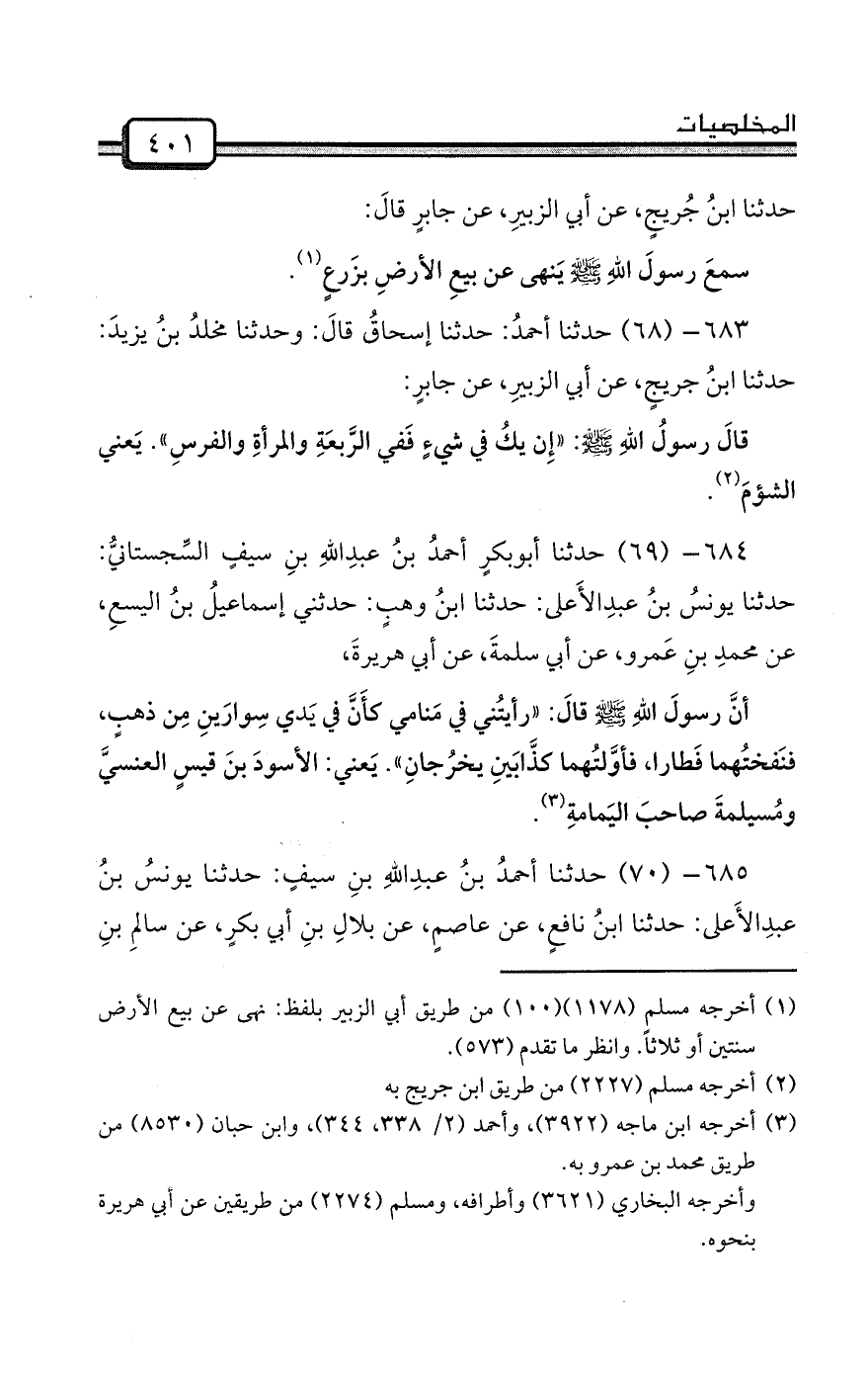 683- (68) حدثنا أحمدُ: حدثنا إسحاقُ قالَ: وحدثنا مخلدُ بنُ يزيدَ: حدثنا ابنُ جريجٍ، عن أبي الزبيرِ، عن جابرٍ: