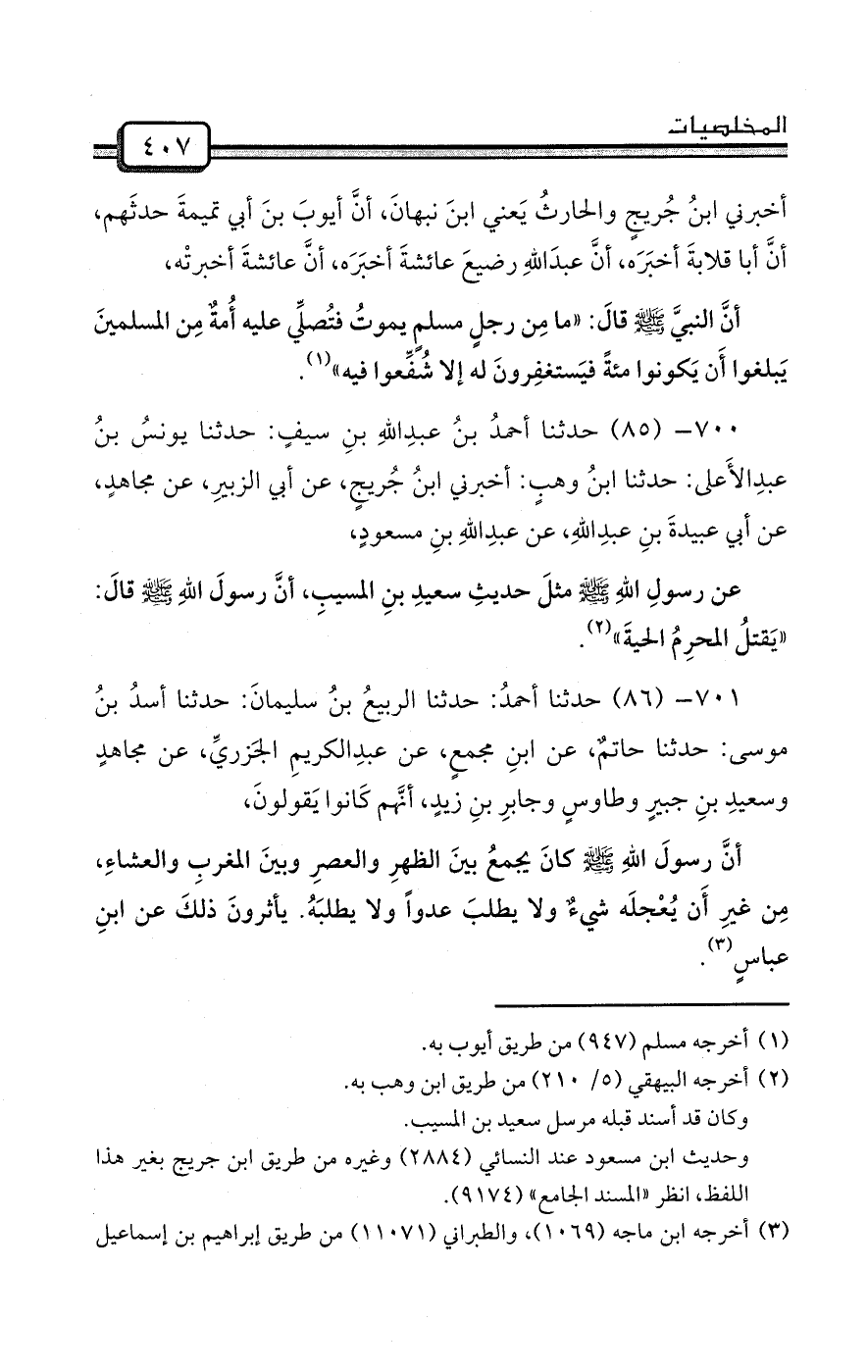 701- (86) حدثنا أحمدُ: حدثنا الربيعُ بنُ سليمانَ: حدثنا أسدُ بنُ موسى: حدثنا حاتمٌ، عن ابنِ مجمعٍ، عن عبدِالكريمِ الجَزريِّ، عن مجاهدٍ وسعيدِ بنِ جبيرٍ وطاوسٍ وجابرِ بنِ زيدٍ، أنَّهم كَانوا يَقولونَ،