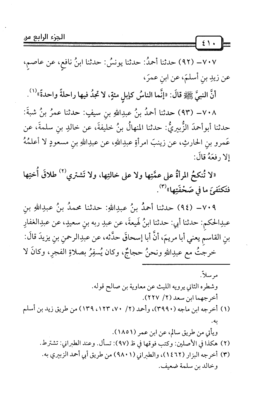 707- (92) حدثنا أحمدُ: حدثنا يونسُ: حدثنا ابنُ نافعٍ، عن عاصمٍ، عن زيدِ بنِ أسلمَ، عن ابنِ عمرَ،