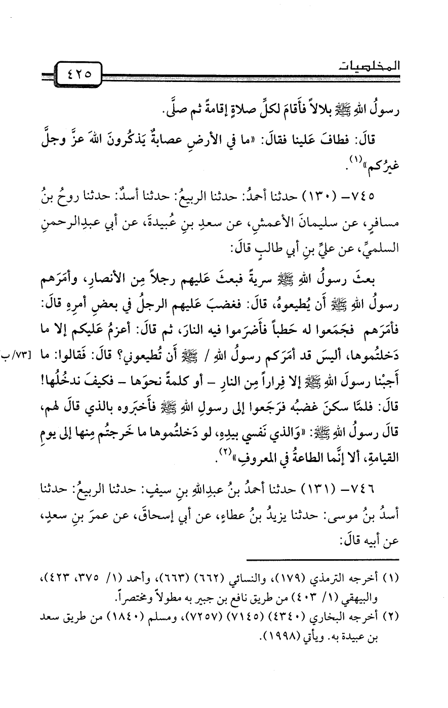 745- (130) حدثنا أحمدُ: حدثنا الربيعُ: حدثنا أسدٌ: حدثنا روحُ بنُ مسافرٍ، عن سليمانَ الأعمشِ، عن سعدِ بنِ عُبيدةَ، عن أبي عبدِالرحمنِ السلميِّ، عن عليِّ بنِ أبي طالبٍ قالَ: