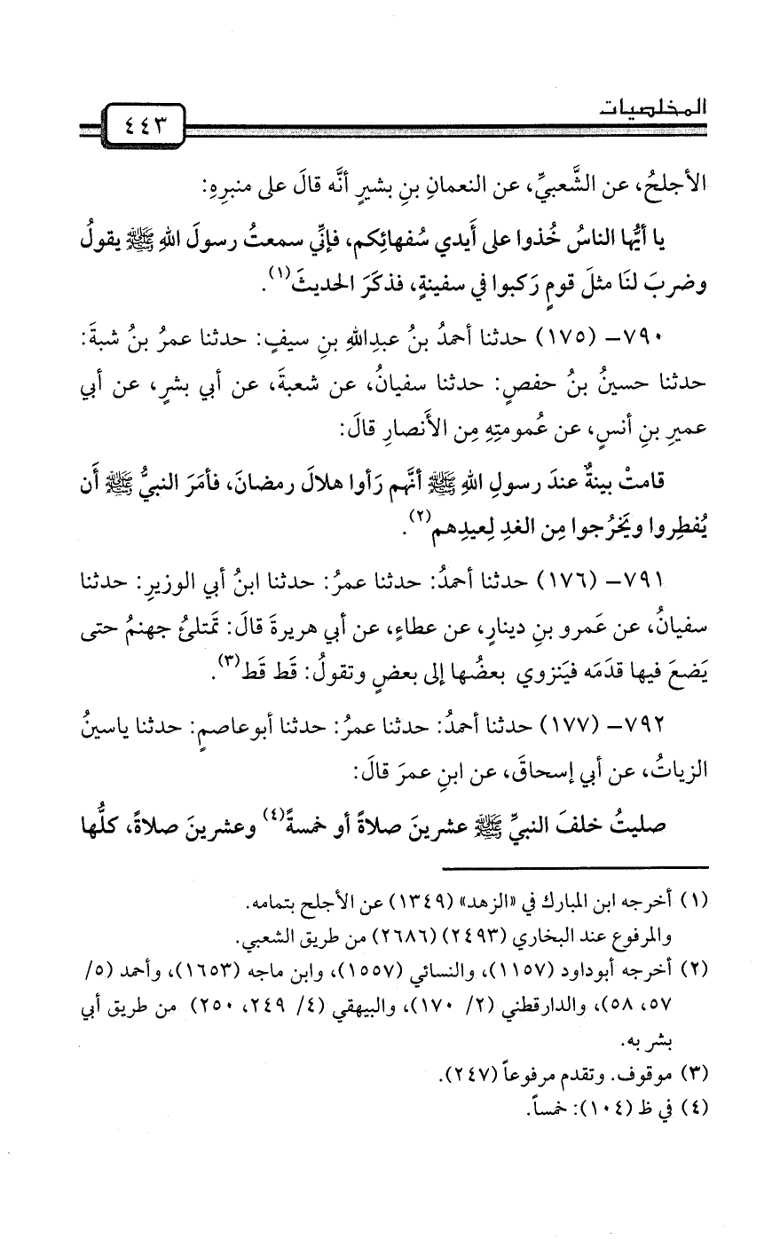 790- (175) حدثنا أحمدُ بنُ عبدِاللهِ بنِ سيفٍ: حدثنا عمرُ بنُ شبةَ: حدثنا حسينُ بنُ حفصٍ: حدثنا سفيانُ، عن شعبةَ، عن أبي بشرٍ، عن أبي عميرِ بنِ أنسٍ، عن عُمومتِهِ مِن الأَنصارِ قالَ: