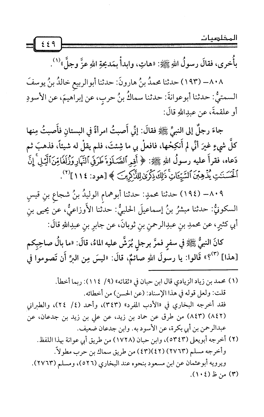 808- (193) حدثنا محمدُ بنُ هارونَ: حدثنا أبوالربيعِ خالدُ بنُ يوسفَ السمتيُّ: حدثنا أبوعوانةَ: حدثنا سماكُ بنُ حربٍ، عن إبراهيمَ، عن الأسودِ أو علقمةَ، عن عبدِاللهِ قالَ: