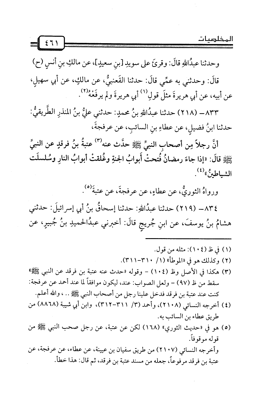 وحدثنا عبدُاللهِ قالَ: وقرئَ على سويدِ [بنِ سعيدٍ] ، عن مالكِ بنِ أنسٍ (ح)