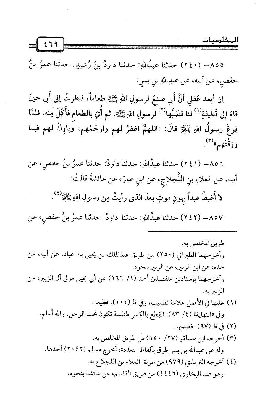 855- (240) حدثنا عبدُاللهِ: حدثنا داودُ بنُ رُشيدٍ: حدثنا عمرُ بنُ حفصٍ، عن أبيه، عن عبدِاللهِ بنِ بسرٍ: