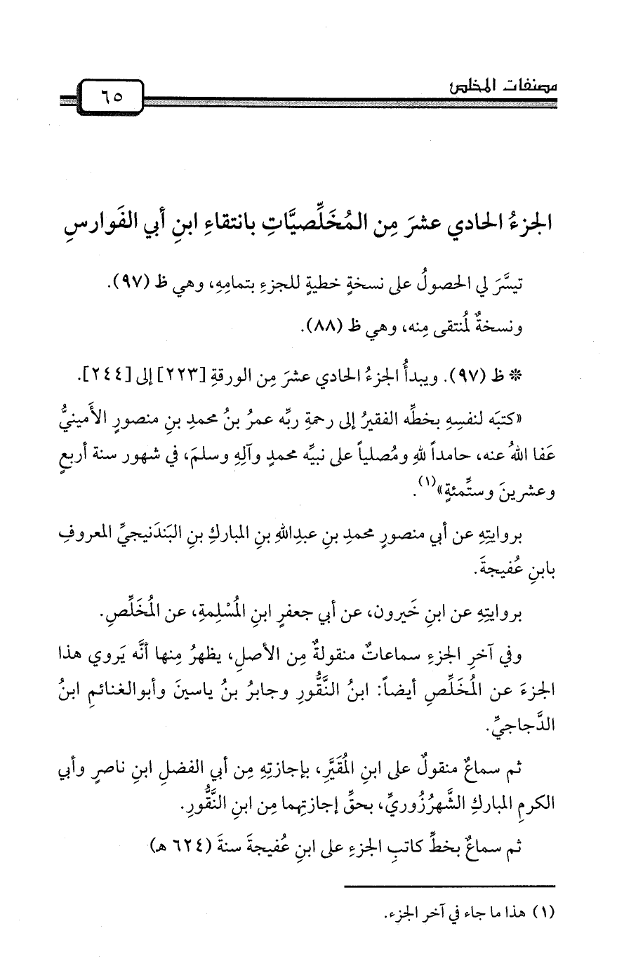 الجزءُ الحادي عشرَ مِن المُخَلِّصيَّاتِ بانتقاءِ ابنِ أبي الفَوارسِ