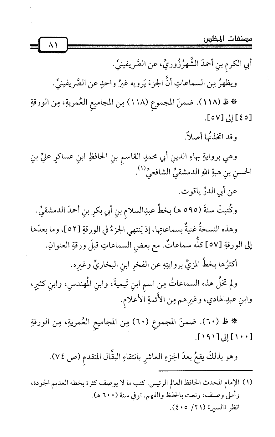 أبي الكرمِ بنِ أحمدَ الشَّهرُزُوريِّ، عن الصَّريفينيِّ.