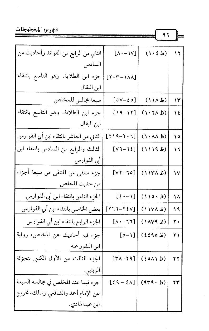 23- ... (ظ 9390) ... [48 - 49] ... جزء فيما عند المخلص في مجالسه السبعة عن الإمام أحمد والشافعي ومالك، تخريج ابن عبد الهادي.