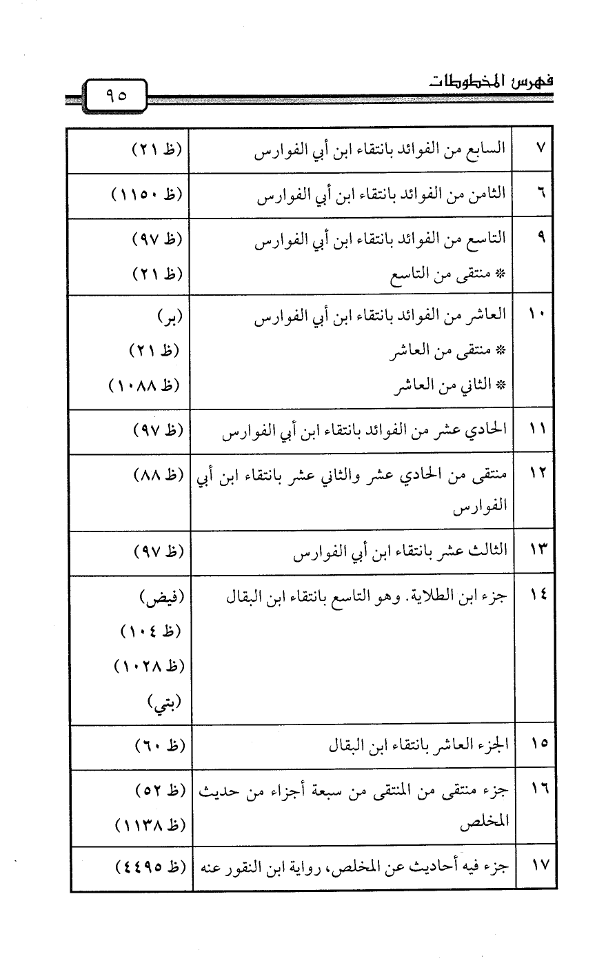 16- ... جزء منتقى من المنتقى من سبعة أجزاء من حديث المخلص ... (ظ 52) ، (ظ 1138)