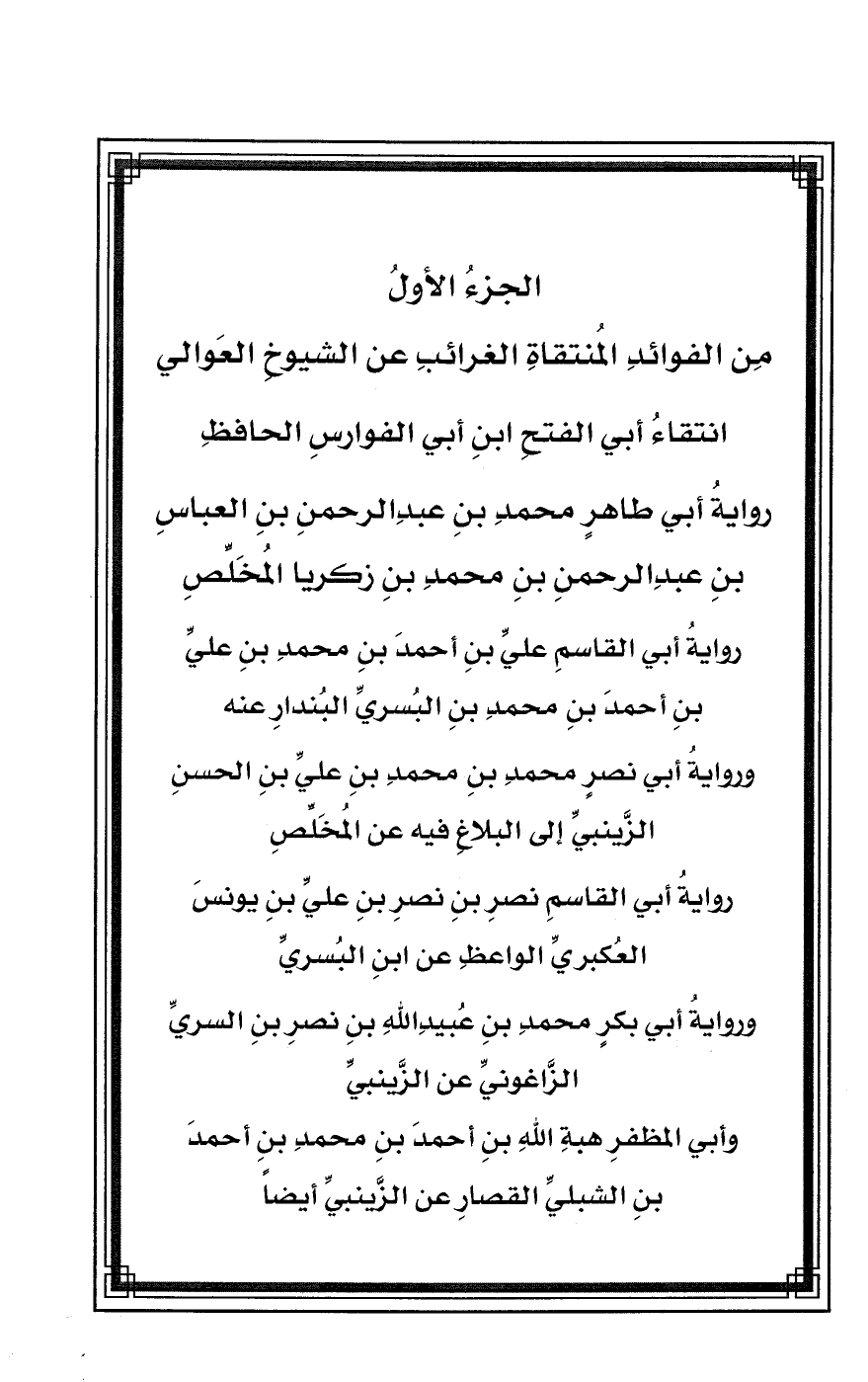 روايةُ أبي طاهرٍ محمدِ بنِ عبدِالرحمنِ بنِ العباسِ بنِ عبدِالرحمنِ بنِ محمدِ بنِ زكريا المُخَلِّصِ