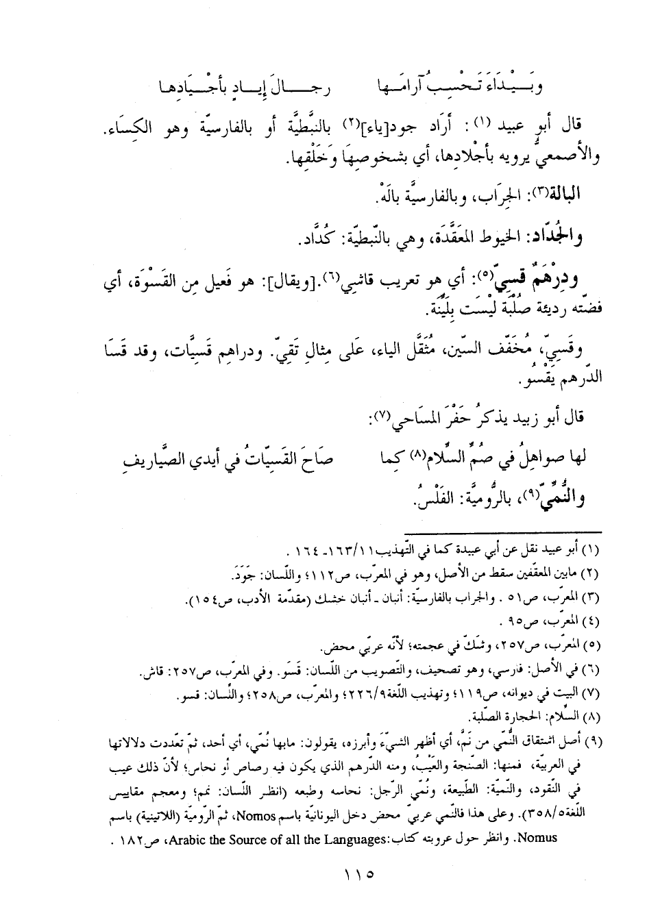 ودرهم قسي: أي هو تعريب قاشي. [ويقال]: هو فعيل من القسوة، أي فضته رديئة صلبة ليست بلينة.