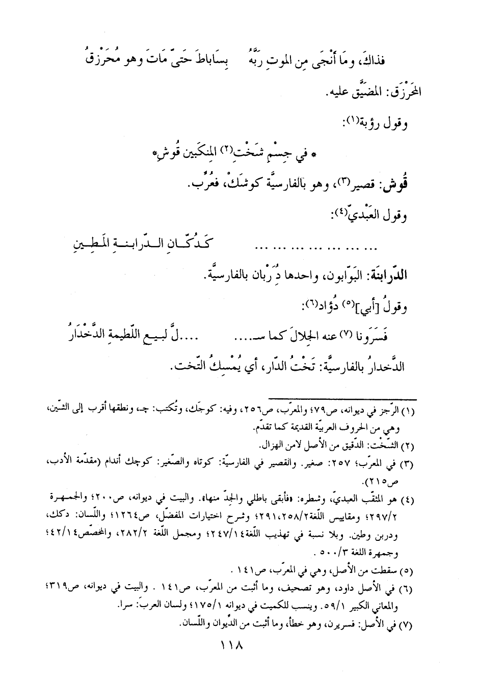 قوش: قصير، وهو بالفارسية كوشك، فعرب.