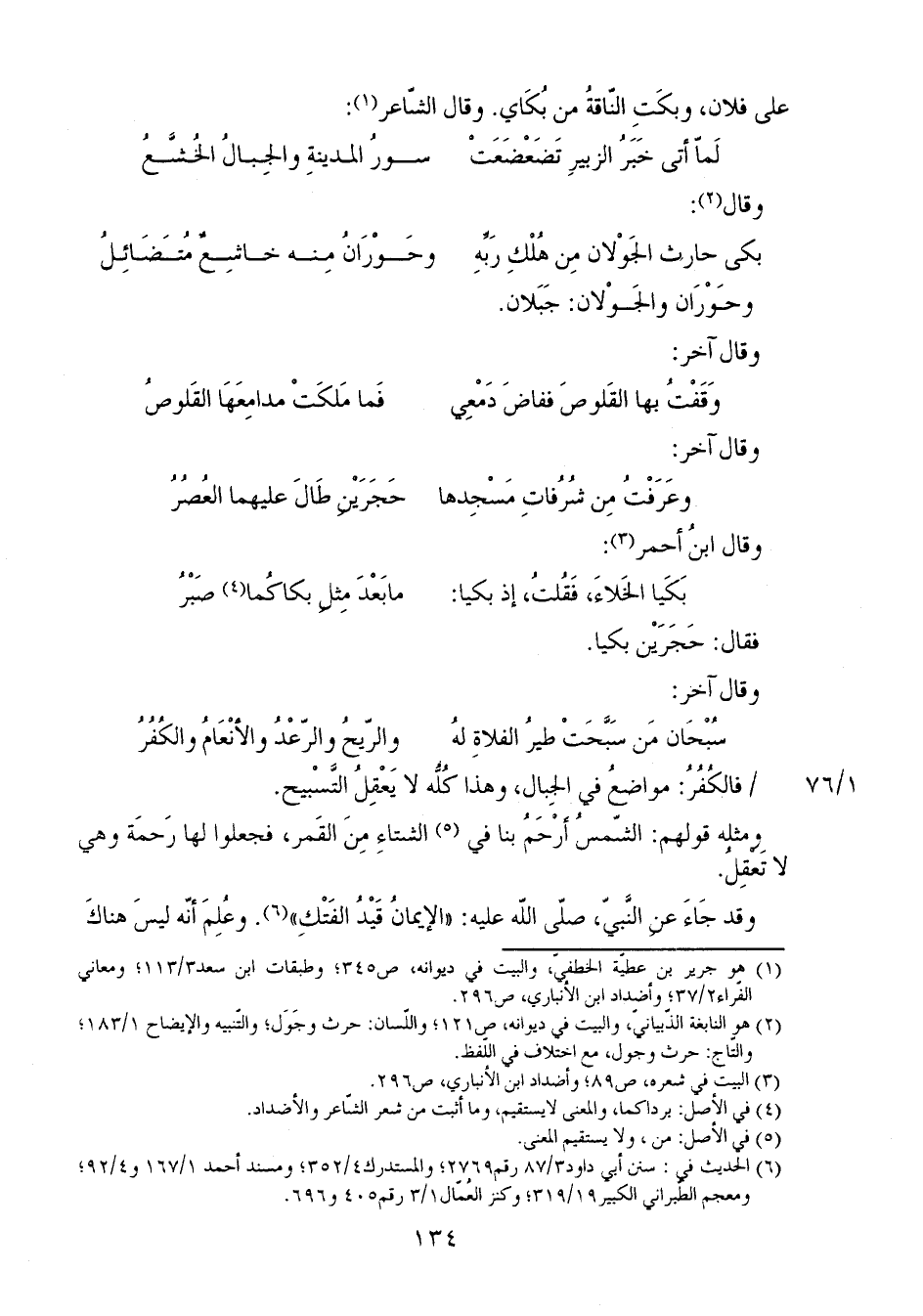 بكى حارث الجولان من هُلك ربه ... وحوران منه خاشع متضائل