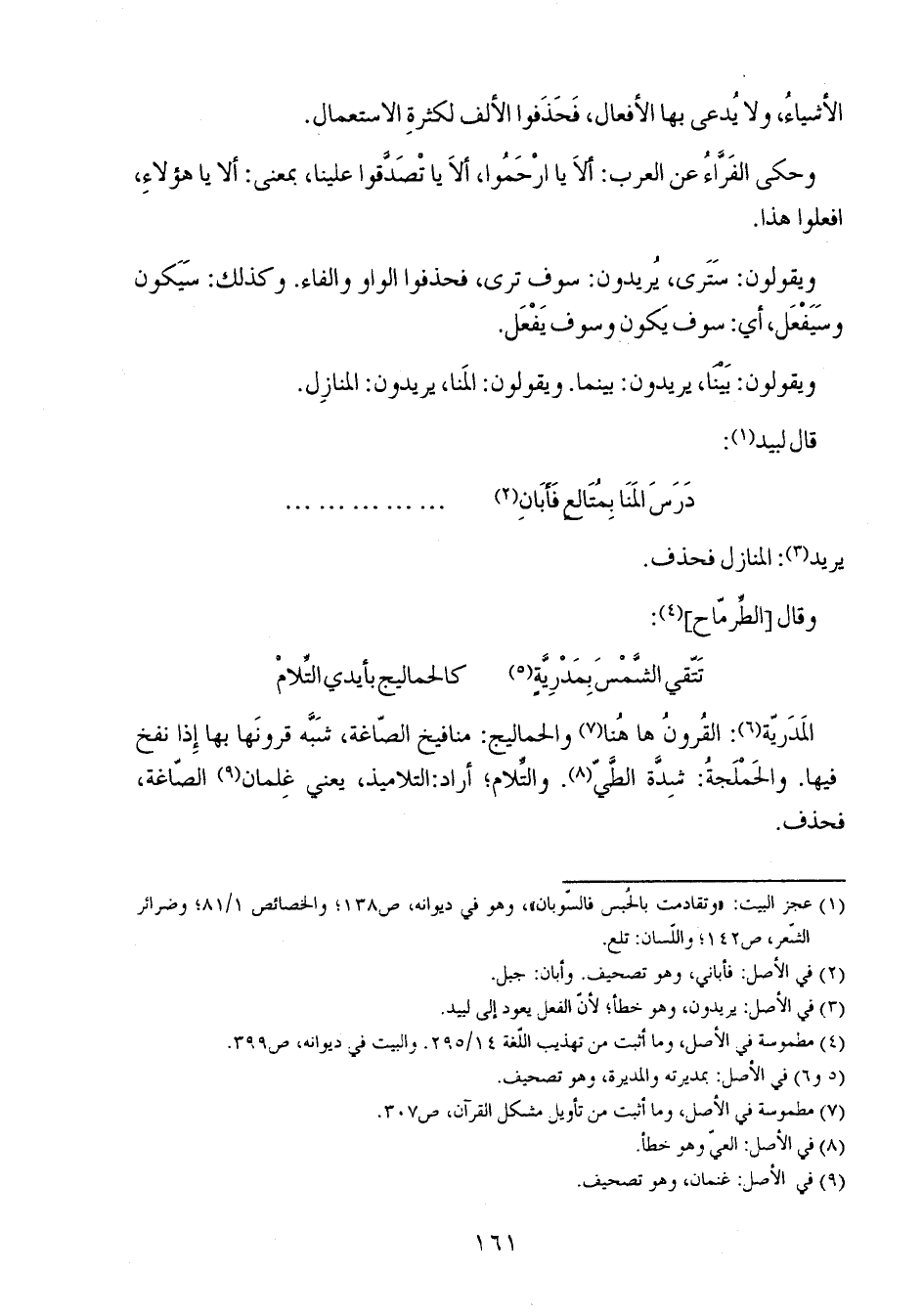 ويقولون: بينا، يريدون: بينما. ويقولون: المنا، يريدون: المنازل.