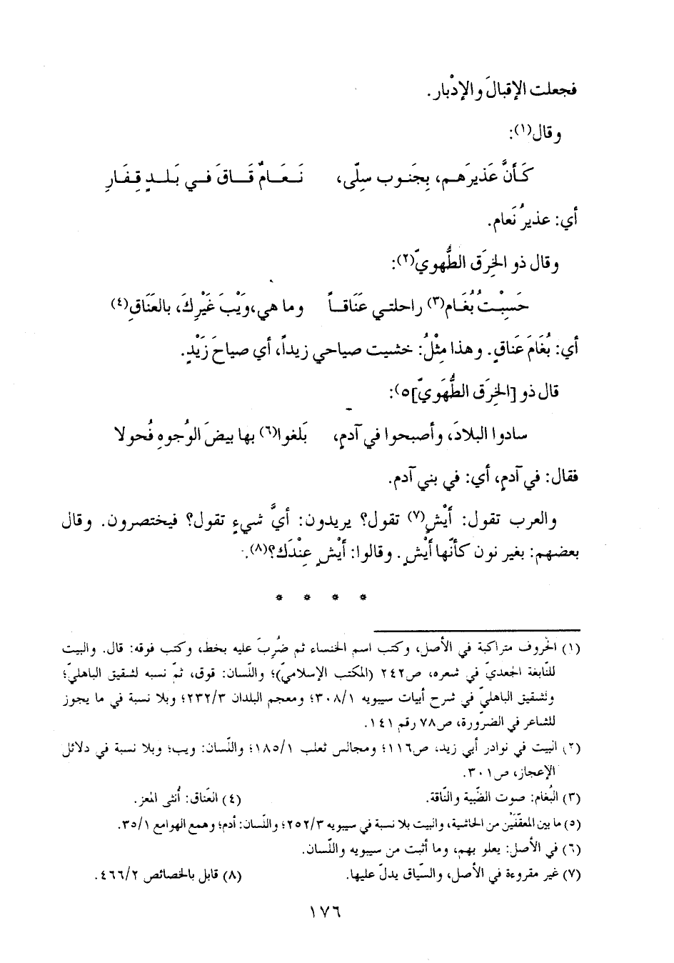 حسبت بغام راحلتي عناقاً ... وما هي، ويب غيرك، بالعناق
