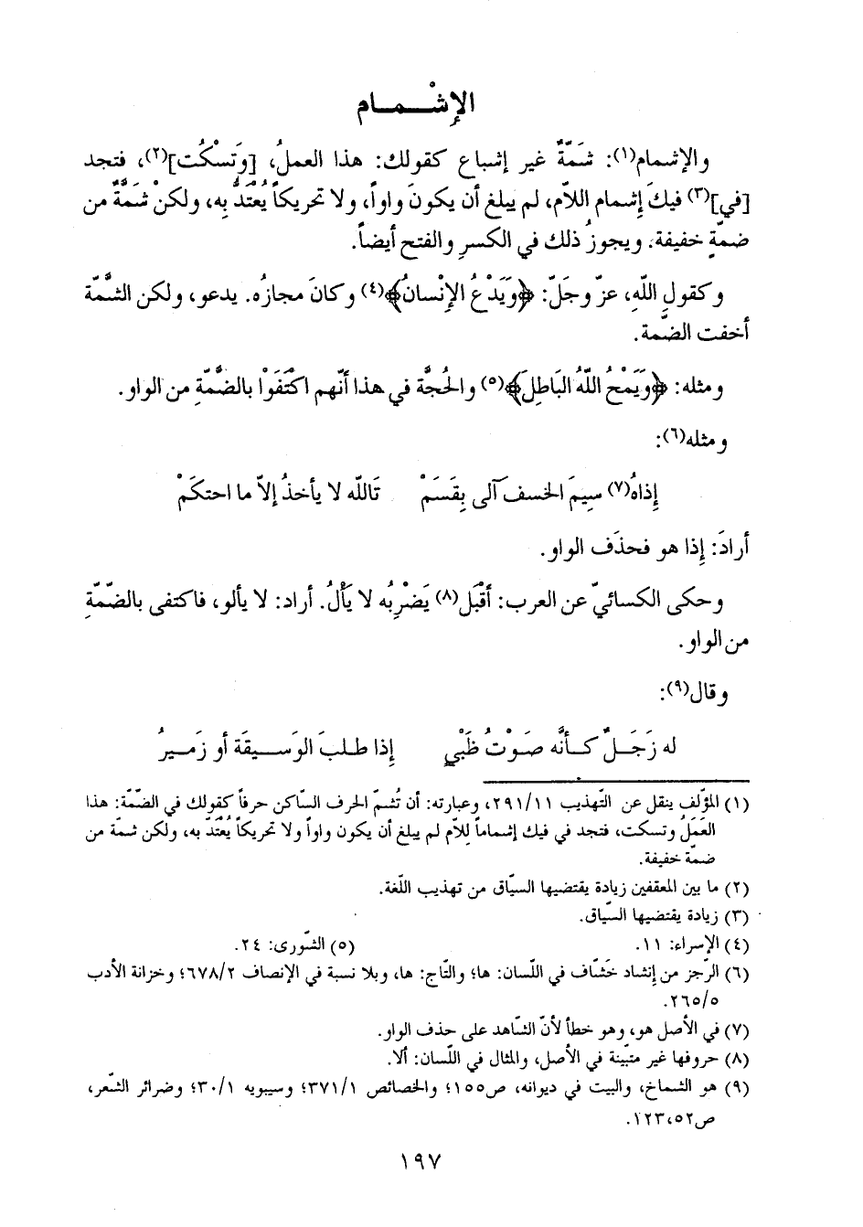 وكقول الله، عز وجل: {وَيَدْعُ الإِنسَانُ} وكان مجازه. يدعو، ولكن الشمة أخفت الضمة.