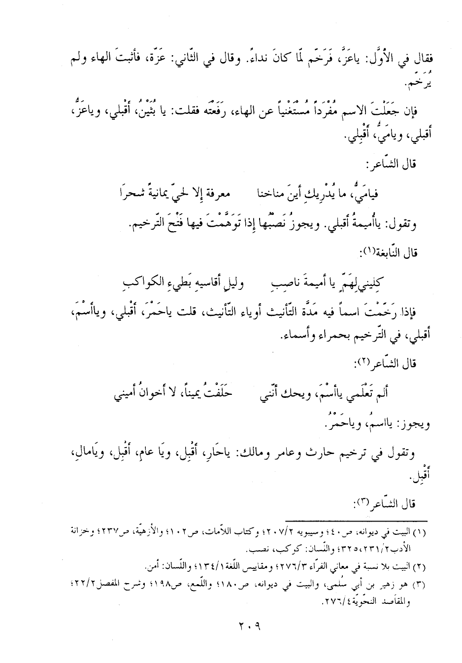 وتقول في ترخيم حارث وعامر ومالك: يا حار، أقبل، ويا عام، أقبل، ويا مال، أقْبِل.