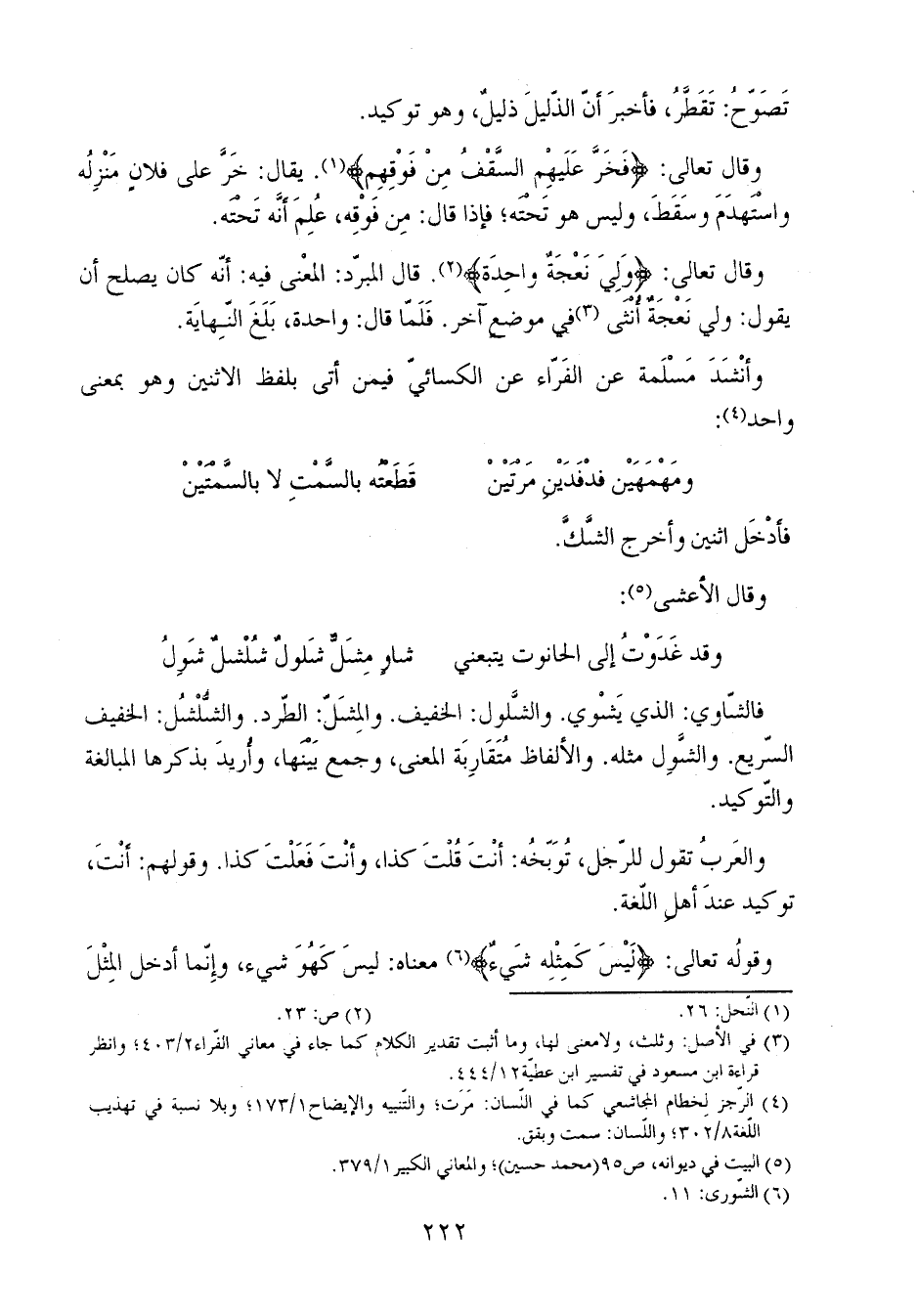 وقال تعالى: {وَلِيَ نَعْجَةٌ وَاحِدَةٌ}. قال المبرد: المعنى فيه: أنه كان يصلح أن يقول: ولي نعجة أنثى في موضع آخر. فلَمّا قال: واحدة، بلغ النهاية.
