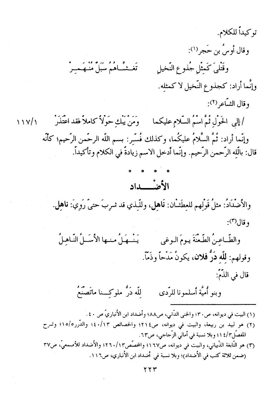 والأضداد: مثل قولهم للعطشان: ناهل، وللذي قد شرب حتى روي: ناهل.