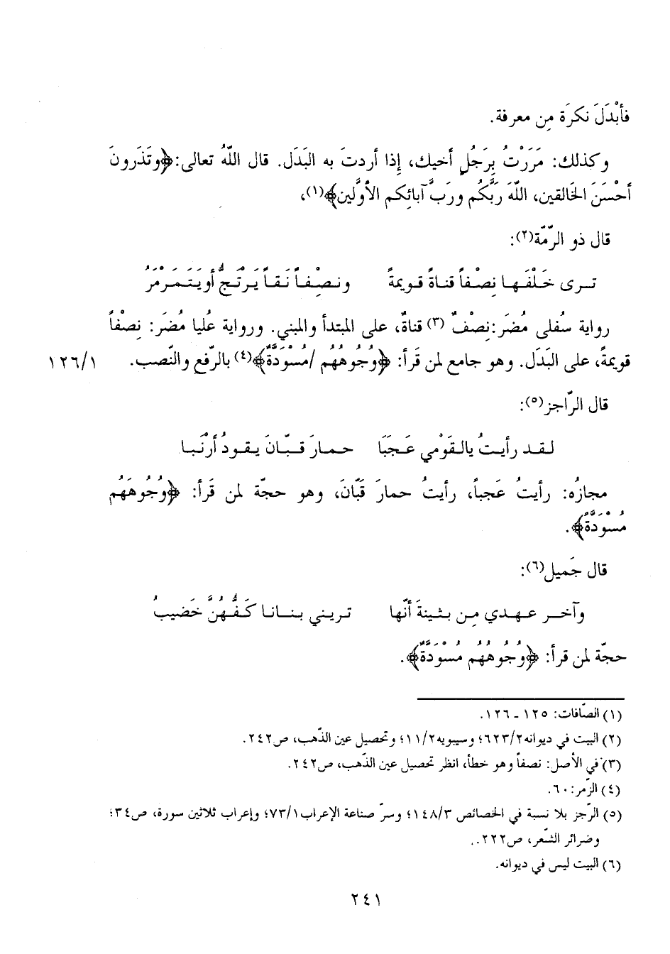 وكذلك: مررت برجل أخيك، إذا أردت به البدل. قال الله تعالى: {وَتَذَرُونَ أَحْسَنَ الْخَالِقِينَ، اللَّهَ رَبَّكُمْ وَرَبَّ آبَائِكُمْ الأَوَّلِينَ}.