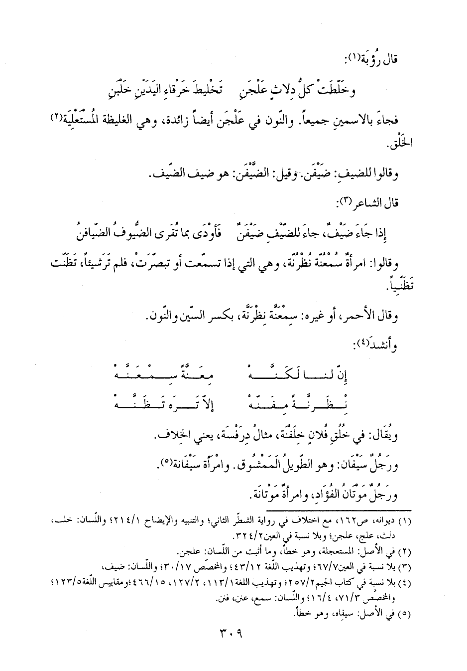 فجاء بالاسمين جميعاً. والنون في علجن أيضاً زائدة، وهي الغليظة المستعلية الخلق.