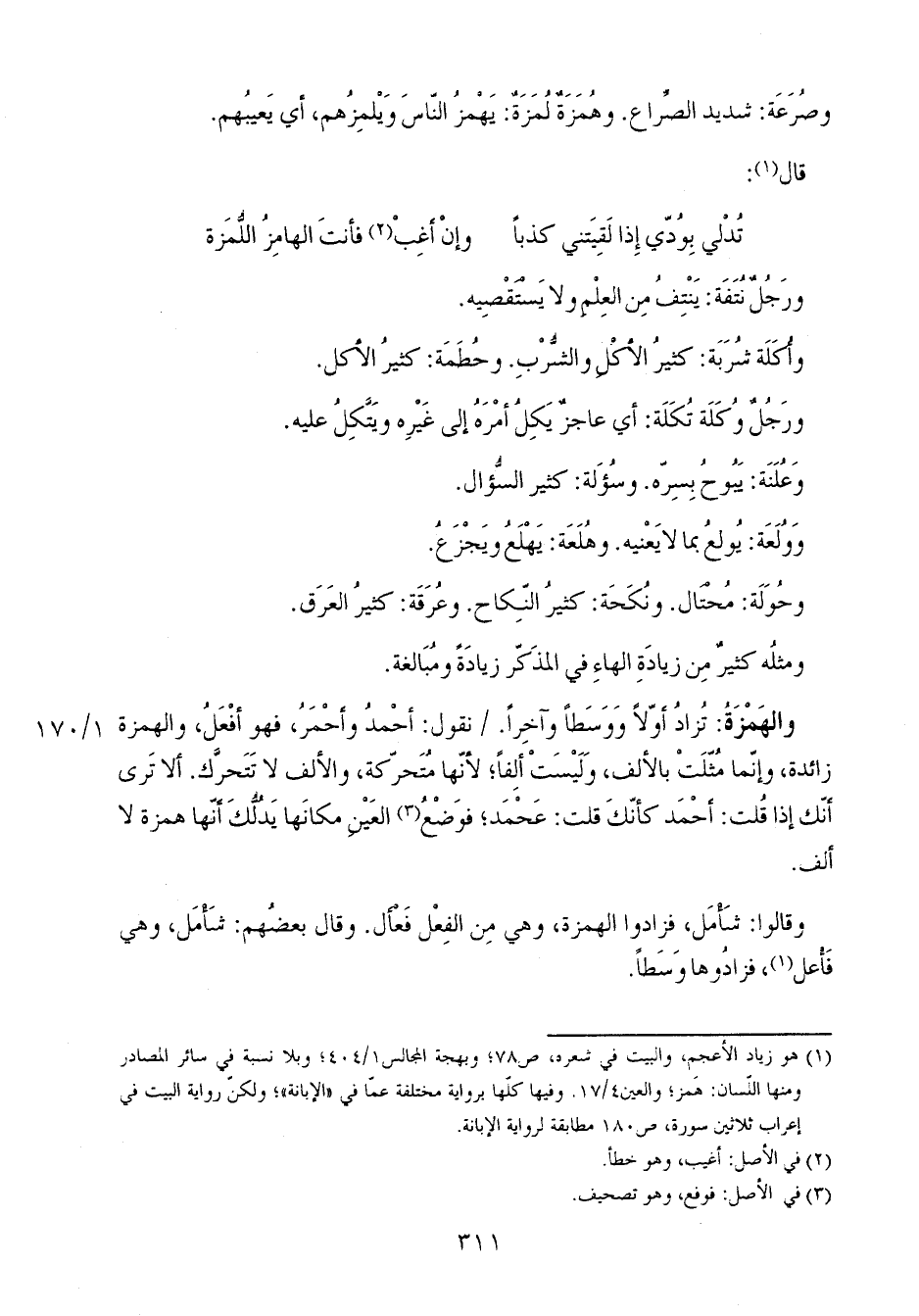 والهمزة: تزاد أولاً ووسطاً وآخراً. نقول: أحمد وأحمر، فهو أفعل، والهمزة زائدة، وإنما مثلت بالألف، وليست ألفاً؛ لأنها متحركة، والألف لا تتحرك. ألا ترى أنك إذا قلت: أحمد كأنك قلت: عحمد؛ فوضع العين مكانها يدلُّك أنها همزة لا ألف.