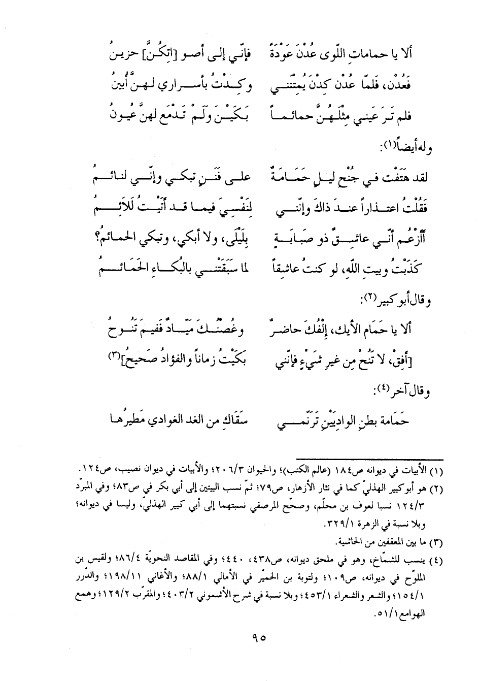 ألا يا حمامات اللوى عُدن عودة ... فإني إلى أصو [اتكن] حزين