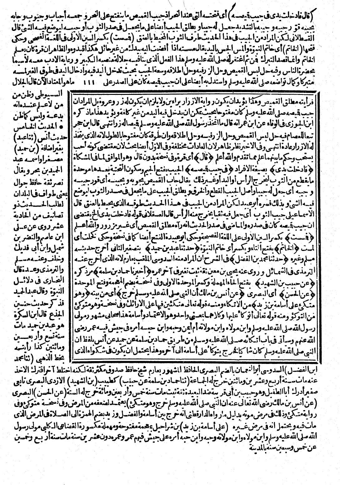 وَفِي نُسْخَةٍ بِضَمِّ الْمُعْجَمَةِ وَفَتْحِ الْمُوَحَّدَةِ. (عَنِ الْحَسَنِ) : أَيِ الْبَصْرِيِّ. (عَنْ أَنَسِ بْنِ مَالِكٍ: أَنَّ النَّبِيَّ صَلَّى اللَّهُ عَلَيْهِ وَسَلَّمَ خَرَجَ) : أَيْ مِنْ بَيْتِهِ. (وَهُوَ مُتَّكِئٌ عَلَى أُسَامَةَ بْنِ زَيْدٍ) : مِنَ الِاتِّكَاءِ، وَمِنْهُ قَوْلُهُ تَعَالَى: (مُتَّكِئِينَ فِيهَا عَلَى الْأَرَائِكِ) ، وَفِي نُسْخَةٍ: وَهُوَ مُتَّكِئٌ. مِنَ التَّوَكُّؤِ، وَمِنْهُ قَوْلُهُ تَعَالَى: (أَتَوَكَّأُ عَلَيْهَا) ، وَكِلَاهُمَا بِمَعْنًى وَاحِدٍ وَهُوَ الِاعْتِمَادُ، وَأُسَامَةُ هَذَا صَحَابِيٌّ مَشْهُورٌ، مَوْلَى رَسُولِ اللَّهِ صَلَّى اللَّهُ عَلَيْهِ وَسَلَّمَ وَابْنُ مَوْلَاهُ وَابْنُ مَوْلَاتِهِ أُمِّ أَيْمَنَ، وَحِبُّهُ وَابْنُ حِبِّهِ، أَمَّرَهُ فِي جَيْشٍ فِيهِ عُمَرُ رَضِيَ اللَّهُ عَنْهُمْ، وَسَيَأْتِي فِي بَابِ اتِّكَائِهِ صَلَّى اللَّهُ عَلَيْهِ وَسَلَّمَ مِنْ طَرِيقِ حَمَّادِ بْنِ سَلَمَةَ، عَنْ حُمَيْدٍ، عَنْ أَنَسٍ بِلَفْظِ: أَنَّ النَّبِيَّ صَلَّى اللَّهُ عَلَيْهِ وَسَلَّمَ كَانَ شَاكِيًا، فَخَرَجَ يَتَوَكَّأُ عَلَى أُسَامَةَ إِلَى آخِرِهِ. وَهَذَا يَحْتَمِلُ أَنْ يَكُونَ فِي شَكْوَاهُ الَّذِي