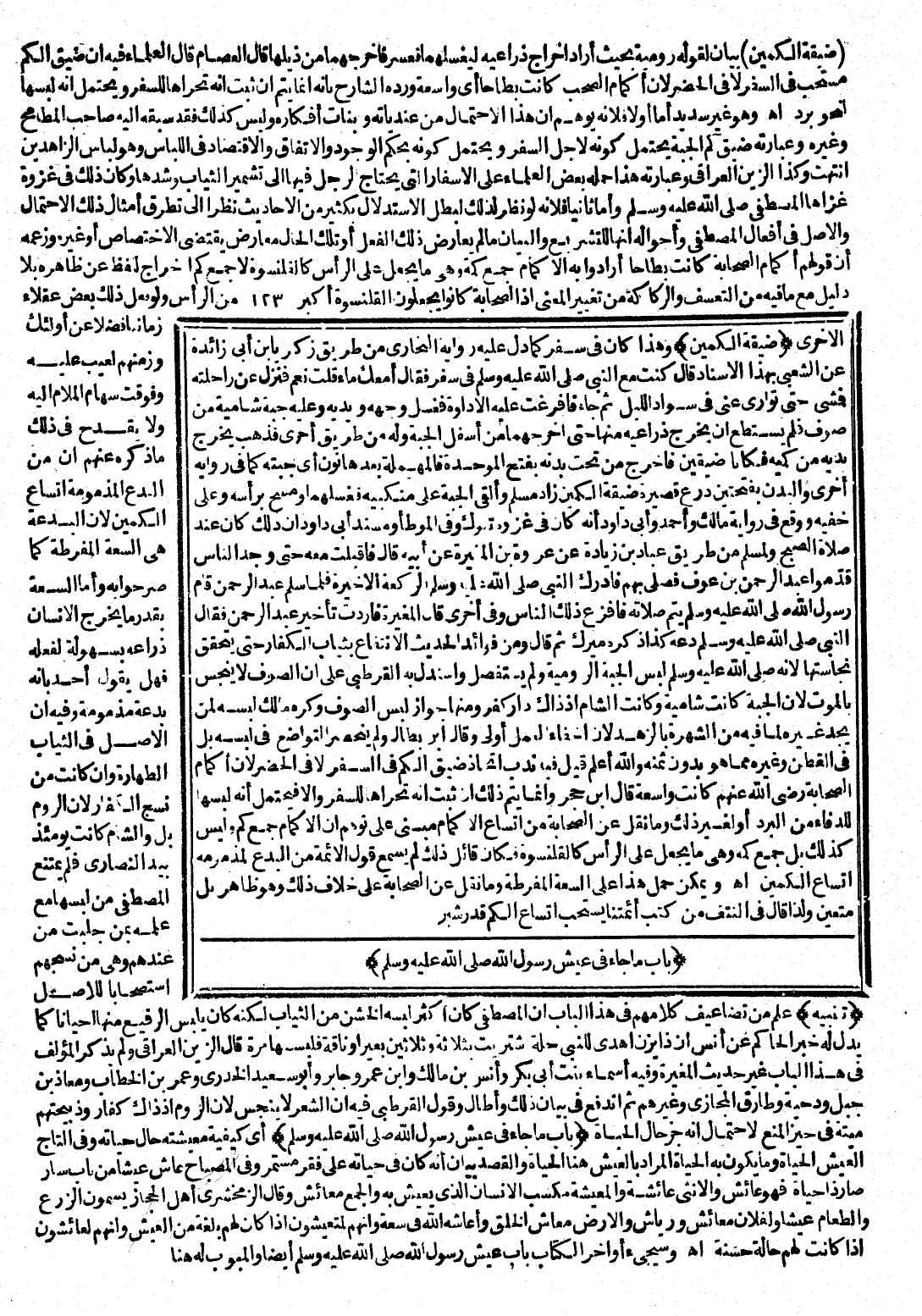 الْأُخْرَى. (ضَيِّقَةَ الْكُمَّيْنِ) : وَهَذَا كَانَ فِي سَفَرٍ كَمَا دَلَّ عَلَيْهِ رِوَايَةُ الْبُخَارِيِّ مِنْ طَرِيقِ زَكَرِيَّا بْنِ أَبِي زَائِدَةَ، عَنِ الشَّعْبِيِّ بِهَذَا الْإِسْنَادِ قَالَ: كُنْتُ مَعَ النَّبِيِّ صَلَّى اللَّهُ عَلَيْهِ وَسَلَّمَ فِي سِفْرٍ فَقَالَ: «أَمَعَكَ مَاءٌ؟» قُلْتُ: نَعَمْ، فَنَزَلَ عَنْ رَاحِلَتِهِ فَمَشَى حَتَّى تَوَارَى عَنِّي فِي سَوَادِ اللَّيْلِ، ثُمَّ جَاءَ، فَأَفْرَغْتُ عَلَيْهِ الْإِدَاوَةَ، فَغَسَلَ وَجْهَهُ وَيَدَيْهِ وَعَلَيْهِ جُبَّةٌ شَامِيَّةٌ مِنْ صُوفٍ، فَلَمْ يَسْتَطِعْ أَنْ يُخْرِجَ ذِرَاعَيْهِ مِنْهَا حَتَّى أَخْرَجَهُمَا مِنْ أَسْفَلِ الْجُبَّةِ. وَلَهُ مِنْ طَرِيقٍ أُخْرَى: فَذَهَبَ يُخْرِجُ يَدَيْهِ مِنْ كُمَّيْهِ فَكَانَا ضَيِّقَيْنِ، فَأَخْرَجَ مِنْ تَحْتِ بَدَنِهِ. بِفَتْحِ الْمُوَحَّدَةِ فَالْمُهْمَلَةِ بَعْدَهَا نُونٌ، أَيْ جُبَّتِهِ، كَمَا فِي رِوَايَةٍ أُخْرَى الْبَدَنُ بِفَتْحَتَيْنِ، دِرْعٌ قَصِيرَةٌ ضَيِّقَةُ الْكُمَّيْنِ. زَادَ مُسْلِمٌ: وَأَلْقَى الْجُبَّةَ عَلَى مَنْكِبَيْهِ، فَغَسَلَهُمَا، وَمَسَحَ بِرَأْسِهِ وَعَلَى خُفَّيْهِ. وَوَقَعَ فِي رِوَايَةِ مَالِكٍ وَأَحْمَدَ وَأَبِي دَاوُدَ: كَانَ فِي غَزْوَةِ تَبُوكَ، وَفِي الْمُوَطَّأِ وَمُسْنَدِ أَبِي دَاوُدَ أَنَّ ذَلِكَ كَانَ عِنْدَ صَلَاةِ الصُّبْحِ. وَلِمُسْلِمٍ مِنْ طَرِيقِ عَبَّادِ بْنِ زِيَادَةَ، عَنْ عُرْوَةَ بْنِ الْمُغِيرَةِ، عَنْ أَبِيهِ قَالَ: فَأَقْبَلْتُ مَعَهُ حَتَّى وَجَدَ النَّاسُ قَدَّمُوا عَبْدَ الرَّحْمَنِ بْنِ عَوْفٍ ; فَصَلَّى بِهِمْ، فَأَدْرَكَ النَّبِيُّ صَلَّى اللَّهُ عَلَيْهِ وَسَلَّمَ الرَّكْعَةَ الْأَخِيرَةَ، فَلَمَّا سَلَّمَ عَبْدُ الرَّحْمَنِ قَامَ رَسُولُ اللَّهِ صَلَّى اللَّهُ عَلَيْهِ وَسَلَّمَ يُتِمُّ صِلَاتَهُ، فَأَفْزَعَ ذَلِكَ النَّاسَ. وَفِي أُخْرَى: قَالَ الْمُغِيرَةُ: فَأَرَدْتُ تَأْخِيرَ عَبْدِ الرَّحْمَنِ فَقَالَ النَّبِيُّ صَلَّى اللَّهُ عَلَيْهِ وَسَلَّمَ: «دَعْهُ» . كَذَا ذَكَرَهُ مِيرَكُ، ثُمَّ قَالَ: وَمِنْ فَوَائِدِ الْحَدِيثِ الِانْتِفَاعُ بِثِيَابِ الْكُفْرِ حَتَّى يُتَحَقَّقُ نَجَاسَتُهَا ; لِأَنَّهُ صَلَّى اللَّهُ عَلَيْهِ وَسَلَّمَ لَبِسَ الْجُبَّةَ الرُّومِيَّةَ، وَلَمْ يَتَفَصَّلْ، وَاسْتَدَلَّ بِهِ الْقُرْطُبِيُّ عَلَى أَنَّ الصُّوفَ لَا يَنْجُسُ بِالْمَوْتِ ; لِأَنَّ الْجُبَّةَ كَانَتْ شَامِيَّةً وَكَانَتِ الشَّامُ إِذَا ذَاكَ دَارُ كُفْرٍ، وَمِنْهَا جَوَازُ لُبْسِ الصُّوفِ. وَكَرِهَ مَالِكٌ لُبْسَهُ لِمَنْ يَجِدُ غَيْرَهُ لِمَا فِيهِ مِنَ الشُّهْرَةِ بِالزُّهْدِ ; لِأَنَّ إِخْفَاءَ الْعَمَلِ أَوْلَى، وَقَالَ ابْنُ بَطَّالٍ: وَلَمْ يَنْحَصِرِ التَّوَاضُعُ فِي لُبْسِهِ بَلْ فِي الْقُطْنِ وَغَيْرِهِ مِمَّا هُوَ بِدُونِ ثَمَنِهِ، وَاللَّهُ أَعْلَمُ. قِيلَ فِيهِ: نَدْبُ اتِّخَاذِ ضَيِّقِ الْكَمِّ فِي السَّفَرِ لَا فِي الْحَضَرِ ; لِأَنَّ أَكْمَامَ الصَّحَابَةِ رَضِيَ اللَّهُ عَنْهُمْ كَانَتْ وَاسِعَةً. قَالَ ابْنُ حَجَرٍ: وَإِنَّمَا يَتِمُّ ذَلِكَ إِنْ ثَبَتَ أَنَّهُ تَحَرَّاهَا لِلسَّفَرِ، وَإِلَّا فَيُحْتَمَلُ أَنَّهُ لَبِسَهَا لِلدِّفَاءِ مِنَ الْبَرْدِ أَوْ لِغَيْرِ ذَلِكَ، وَمَا نُقِلَ عَنِ الصَّحَابَةِ مِنَ اتِّسَاعِ الْأَكْمَامِ مَبْنِيٌّ عَلَى تَوَهُّمِ أَنَّ الْأَكْمَامَ جَمْعُ كُمٍّ، وَلَيْسَ كَذَلِكَ بَلْ جُمَعُ كُمَّةٍ، وَهِيَ مَا يُجْعَلُ عَلَى الرَّأْسِ كَالْقَلَنْسُوَةِ، فَكَأَنَّ قَائِلَ ذَلِكَ لَمْ يَسْمَعْ قَوْلَ الْأَئِمَّةِ: مِنَ الْبِدَعِ الْمَذْمُومَةِ اتِّسَاعُ الْكُمَّينِ، انْتَهَى. وَيُمْكِنُ حَمْلُ هَذَا عَلَى السِّعَةِ الْمُفْرِطَةِ، وَمَا نُقِلَ ع